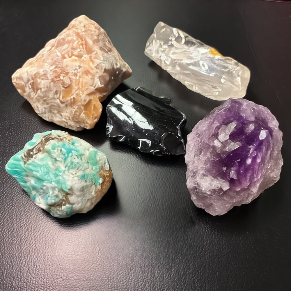 Fünf ausgewählte Rohsteine, sorgfältig aufeinander abgestimmt: