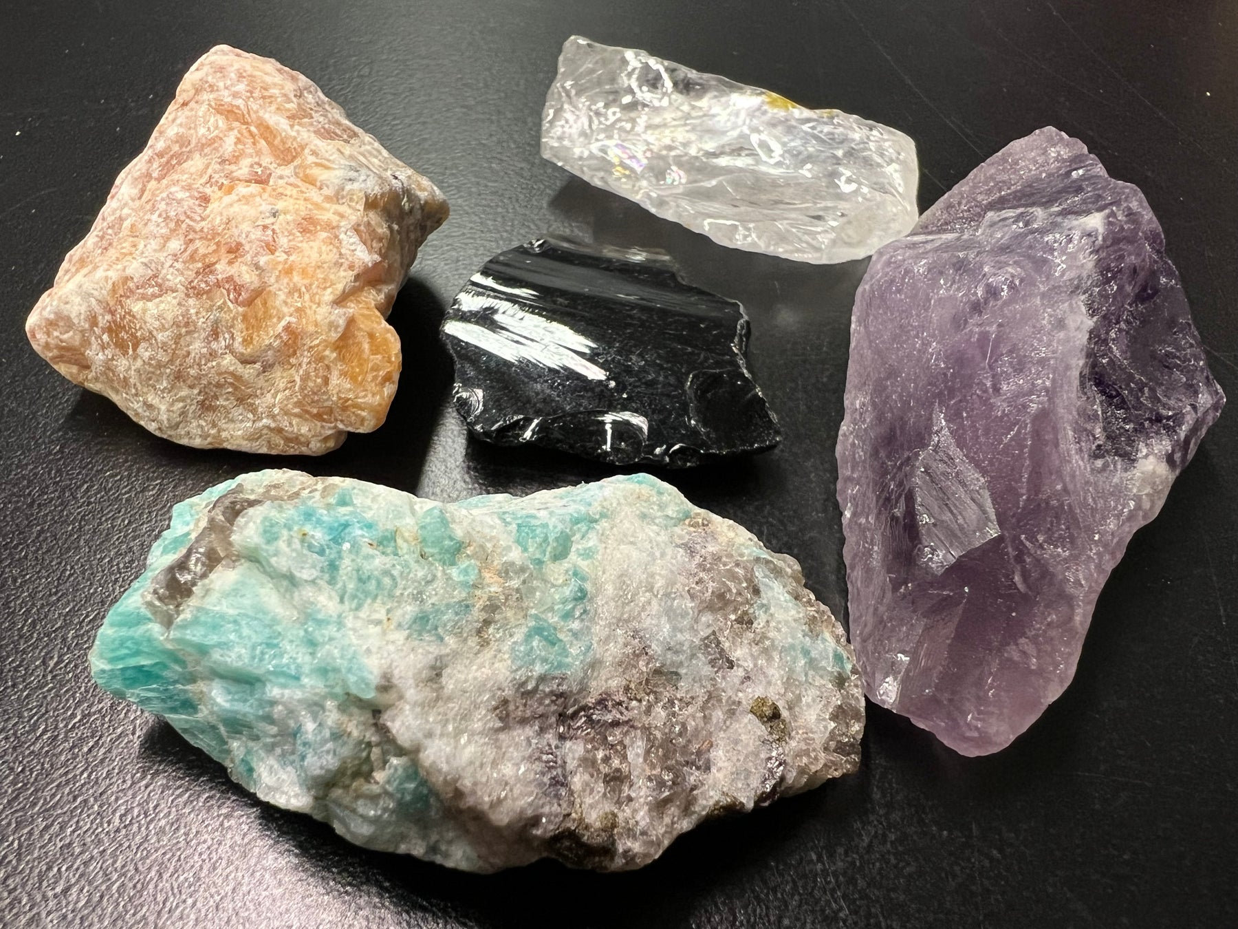 Fünf ausgewählte Rohsteine, sorgfältig aufeinander abgestimmt: